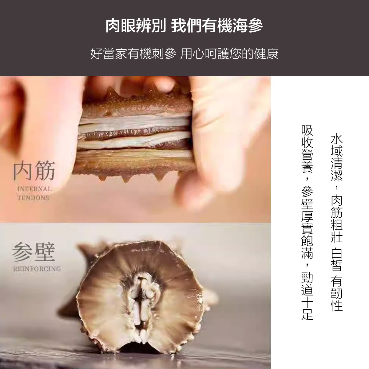 藍血貴族有機乾海參屬藍血貴族系列,精選天海灣天然深海底播有機刺參,顏色與個頭高度一致,品相極佳,專為追求高端品質的消費者打造。每盒 500g,採用 360 度淨製工藝,去除所有不可食用部分,保留海參精華,泡發過程簡單便捷。產品以模擬海風自然風乾技術加工,含鹽量控制在 5%-15%,接近海參自身鹽分,無添加劑,保留原鮮味道與營養。好當家連續 14 年有機認證,確保自然生長,讓您吃得放心。立即選購這款高端有機海參,享受純淨滋補的奢華體驗!